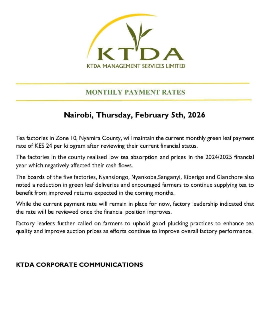 MONTHLY PAYMENT RATES TEA FACTORIES IN ZONE 10. #FarmersFirst #globalleaderinqualityteasMONTHLY PAYMENT RATES TEA FACTORIES IN ZONE 10. #FarmersFirst #globalleaderinqualityteas